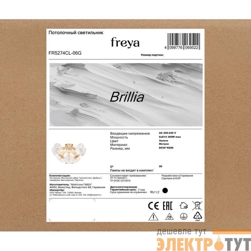 FR5274CL-06G | Светильник Brillia 60Вт E14х6 IP20 потолочн. Freya