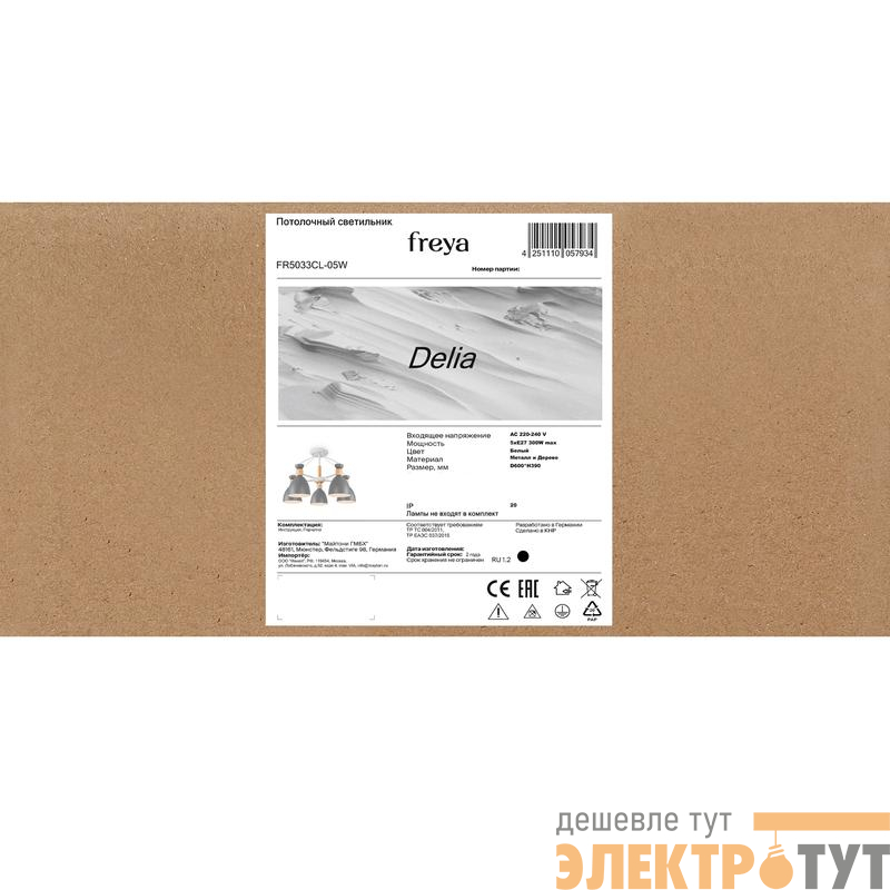 FR5033CL-05W | Светильник Delia 60Вт E27х5 IP20 потолочн. Freya