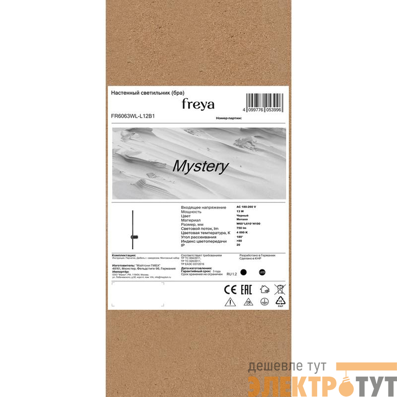 FR6063WL-L12B1 | Светильник настенный (бра) Mystery 13Вт 4000К IP20 Freya