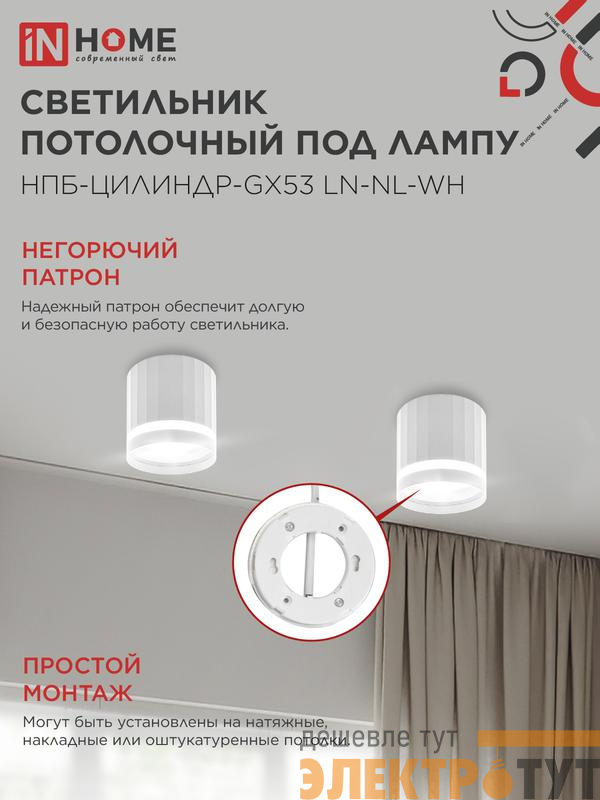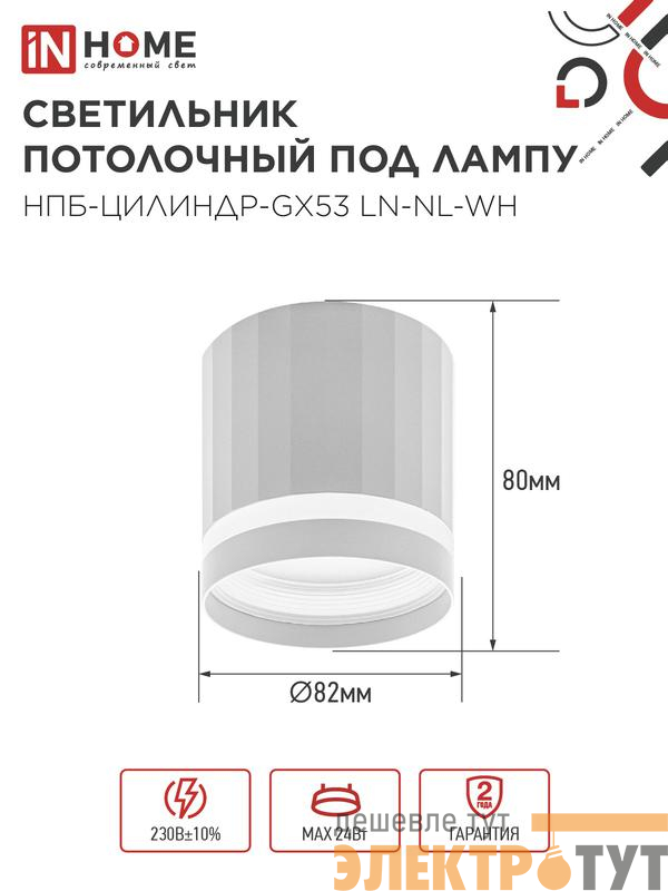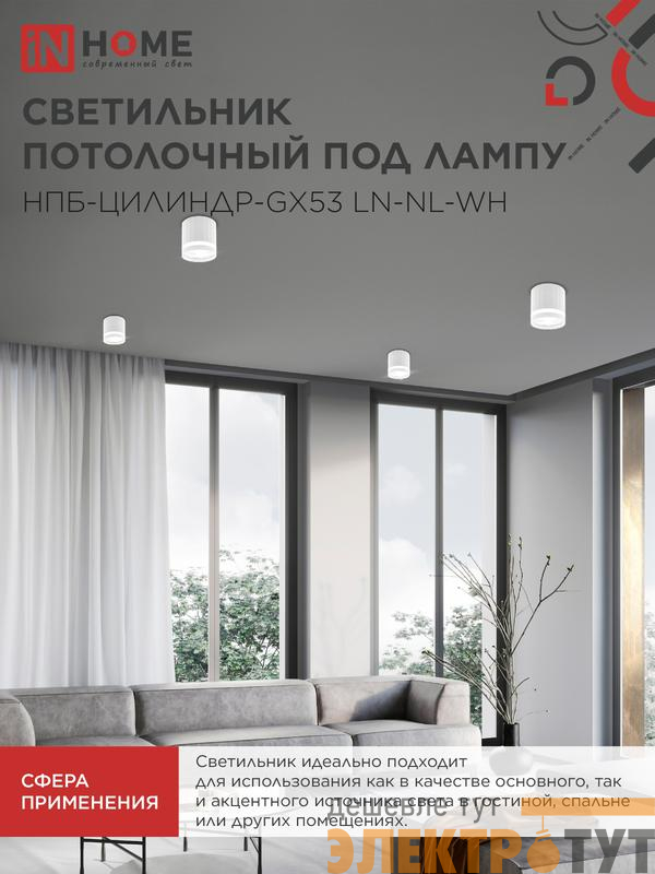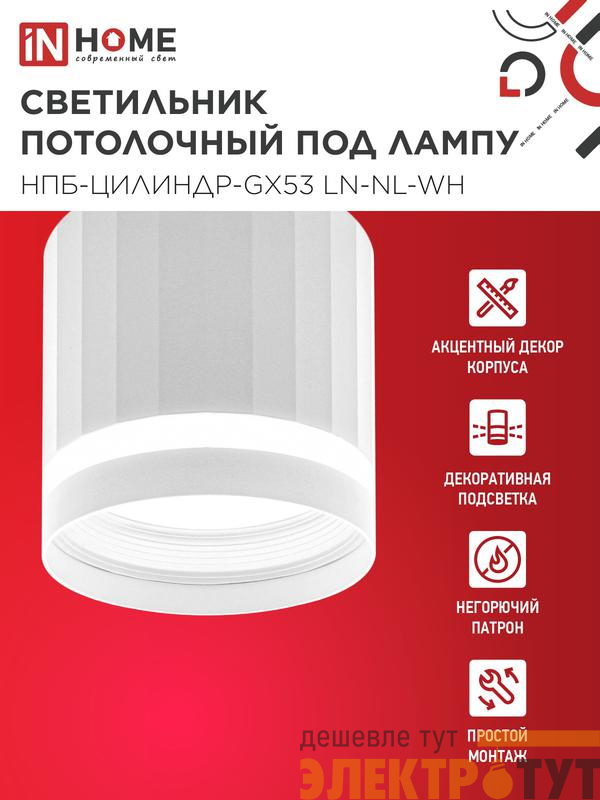 4690612052175 | Светильник НПБ-ЦИЛИНДР-Gх53 LN-NL-WH 82х80мм потолочн. с подсветкой бел. IN HOME