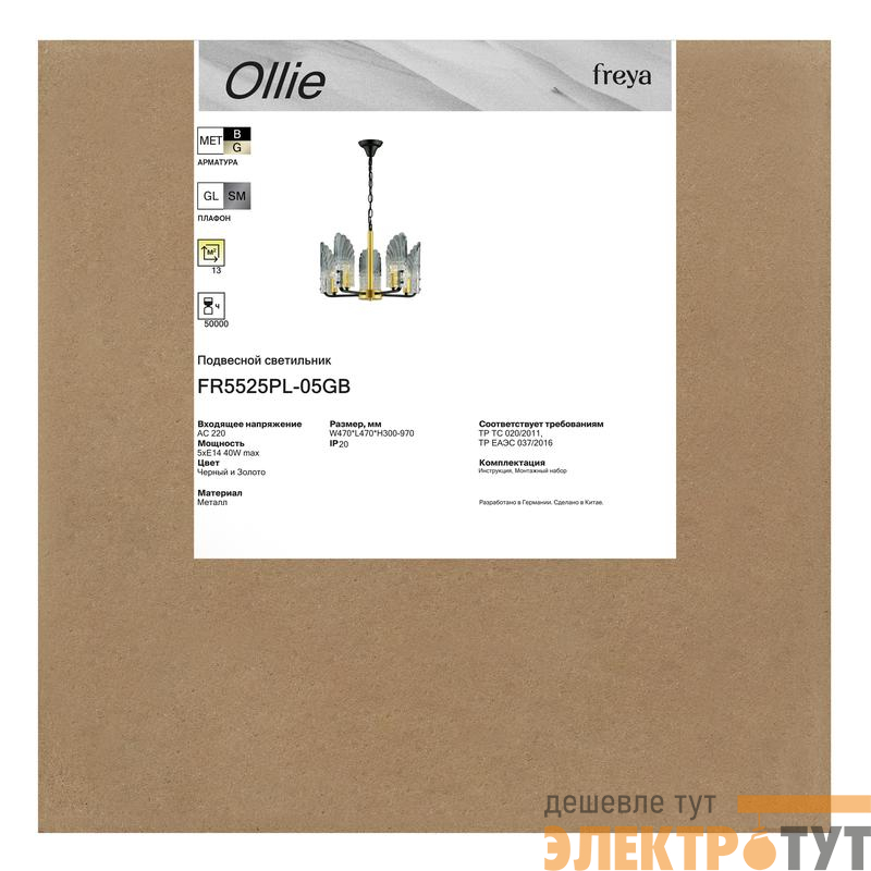 FR5525PL-05GB | Светильник Ollie 5х40Вт E14 IP20 подвесной Freya