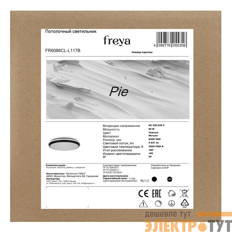 Светильник потолочный Pie 96Вт IP20 Freya FR6086CL-L117B — потолочное решение с высокой мощностью, которое обеспечивает яркое освещение в больших помещениях. Светильник подходит для использования в гостиных, столовых или офисах, добавляя им функциональность и эстетическую привлекательность.