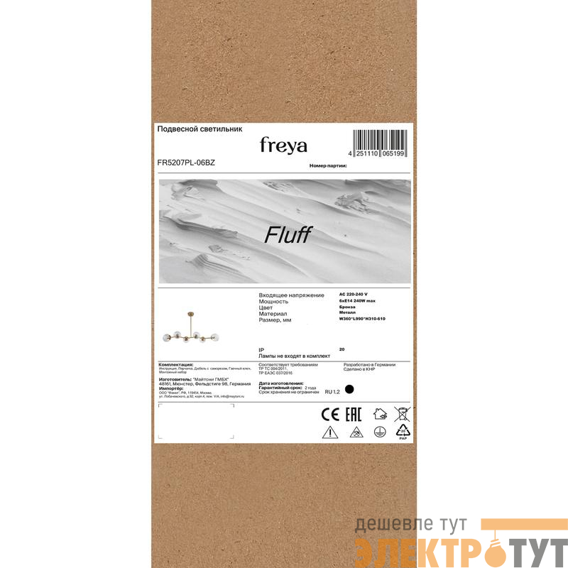 FR5207PL-06BZ | Светильник подвесной Fluff 6х40Вт E14 IP20 Freya