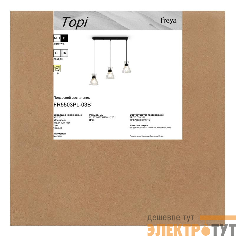 FR5503PL-03B | Светильник Topi 40Вт E27х3 IP20 подвесной Freya
