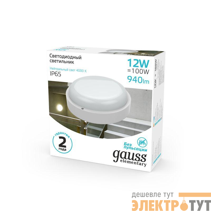 Светодиодные светильники Gauss Elementary предназначены для общего освещения наземных/подземных проходов, проездов, подъездов, лестничных клеток, входных групп, балконов, технических и подсобных помещений, в том числе, с повышенными требованиями к пылевлагозащите до IP65. В данной серии используется драйвер, обеспечивающий стабильную работу светильника при напряжении сети от 160В до 260В. Доступны модели с микроволновым датчиком движения.