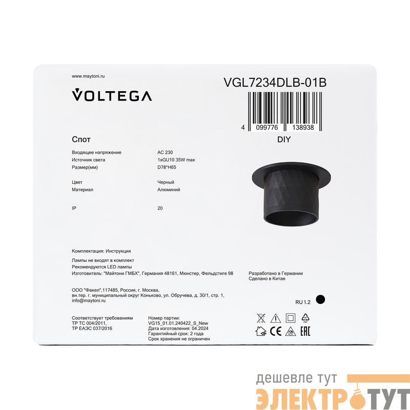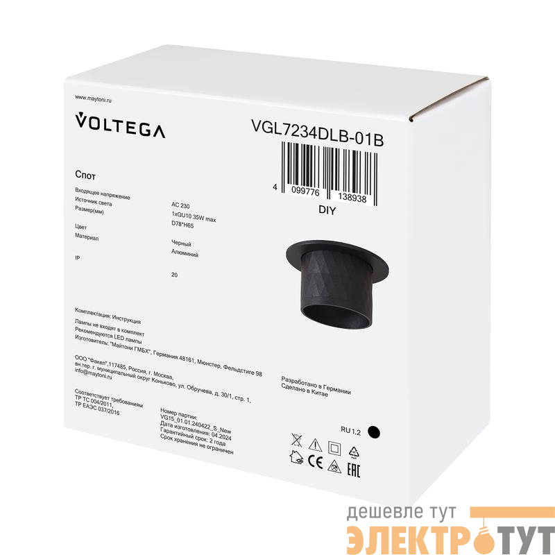 VGL7234DLB-01B | Светильник 234 10Вт GU10х1 IP20 спот Voltega