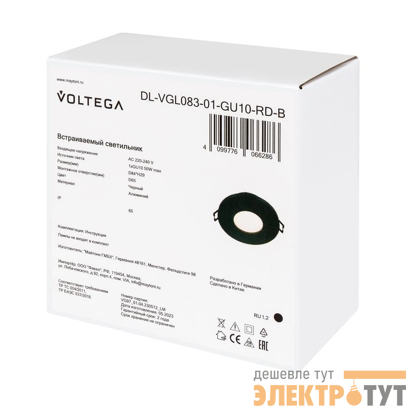 DL-VGL083-01-GU10-RD-B | Светильник 270 10Вт GU10х1 IP65 встраив. Voltega