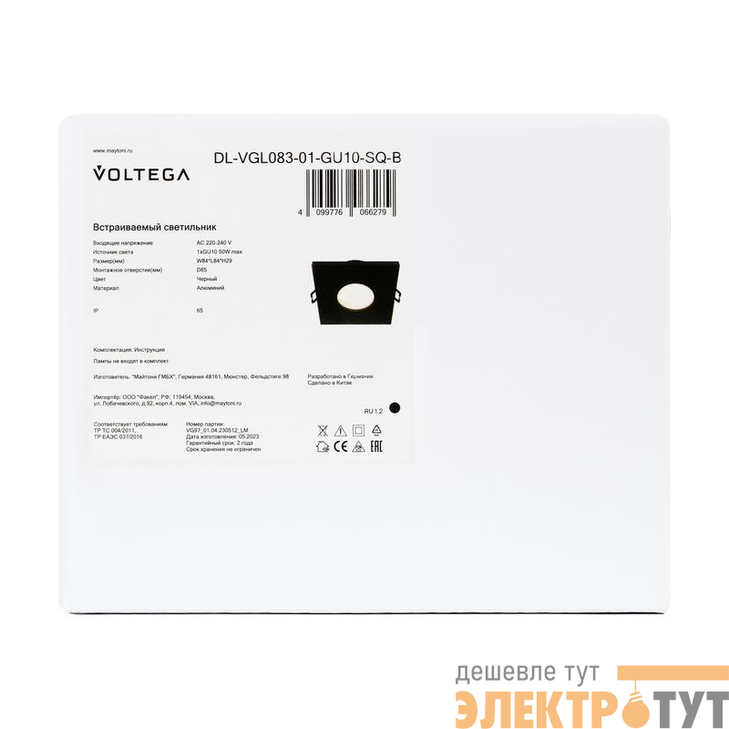 DL-VGL083-01-GU10-SQ-B | Светильник 270 10Вт GU10х1 IP65 встраив. Voltega