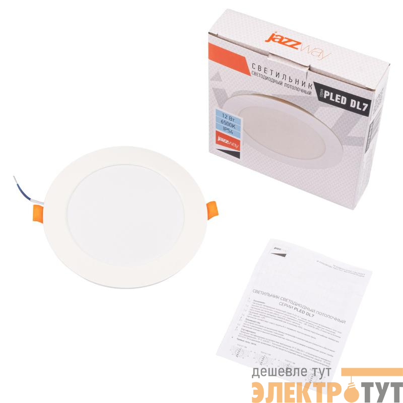 5069084 | Светильник светодиодный PLED DL7 12Вт 6500К IP54 1020лм WH встраив. бел. Pro JazzWay