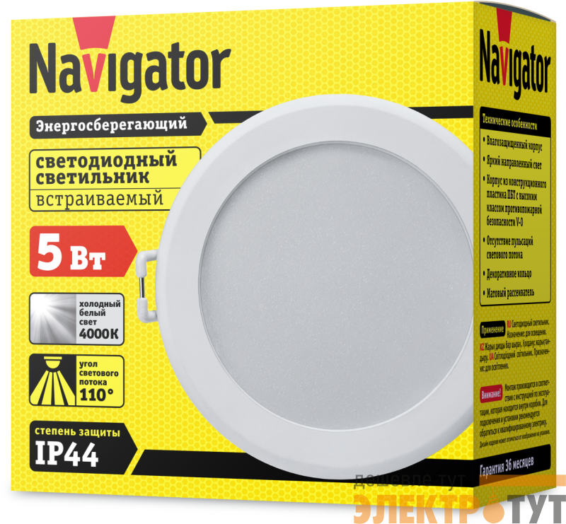 14476 | Светильник светодиодный 14 476 NDL-P3-5W-840-WH-LED 5Вт 4000К Navigator