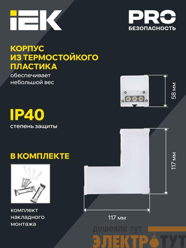 LT-LDCK-L-1010-08-40-K01 | Светильник светодиодный L-образн. 1010 8Вт 4000К 117х117мм бел. IEK