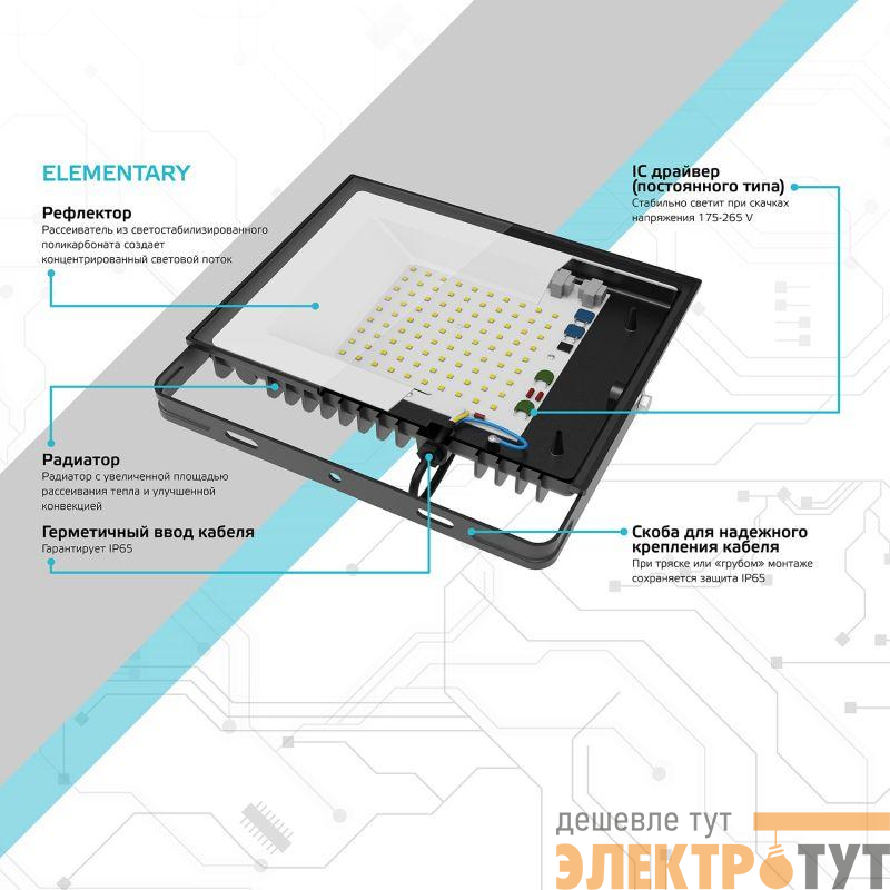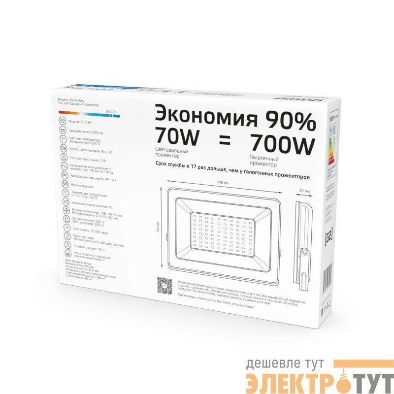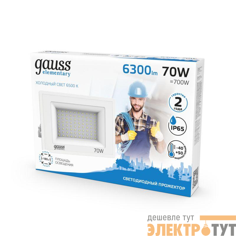 613120370 | Прожектор светодиодный Elementary 70Вт 4900лм IP65 6500К бел. Gauss