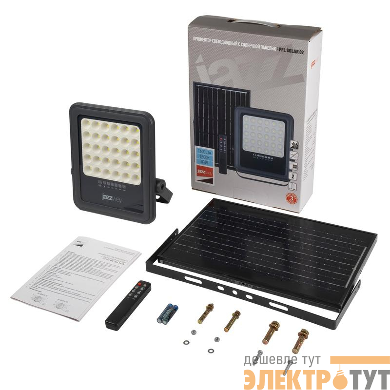 5058477 | Прожектор светодиодный PFL SOLAR 02 100 6500К GR IP65 ДО с солнечн. панелью и пультом Pro+ JazzWay