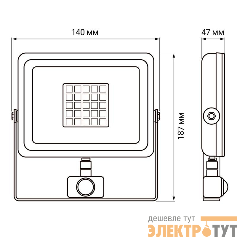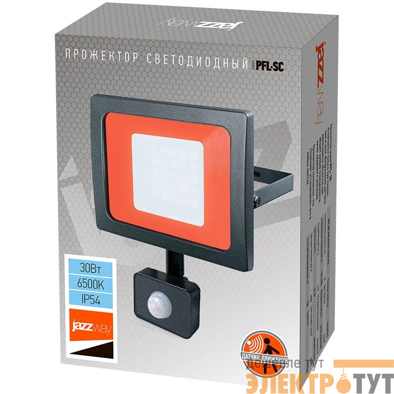 5001411 | Прожектор светодиодный PFL-SC SENSOR 30Вт 6500К IP54 190-260В ДО закален. матов. стекло датчик движения инфракрасный JazzWay