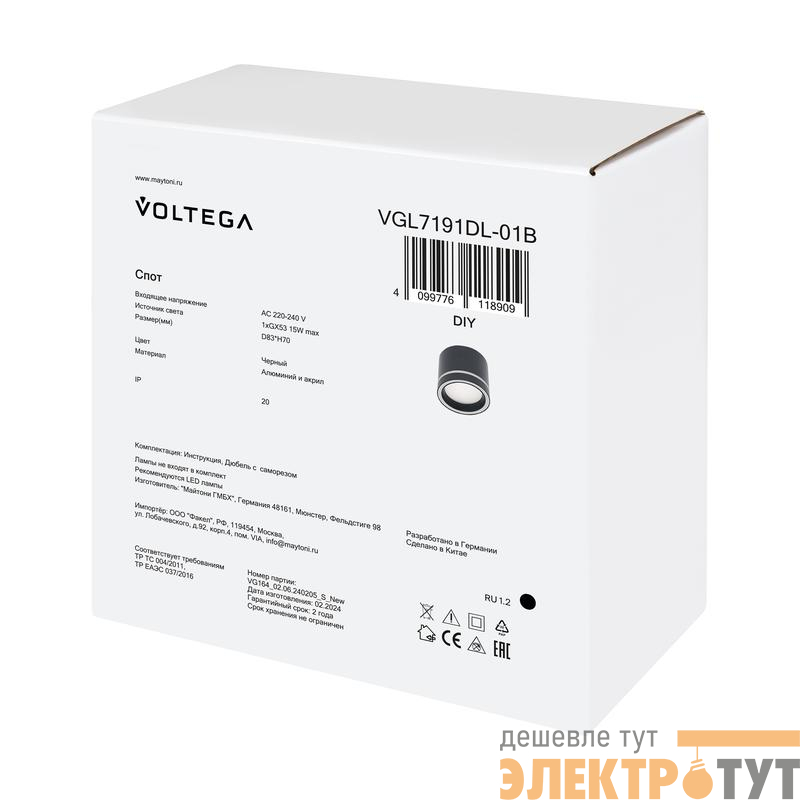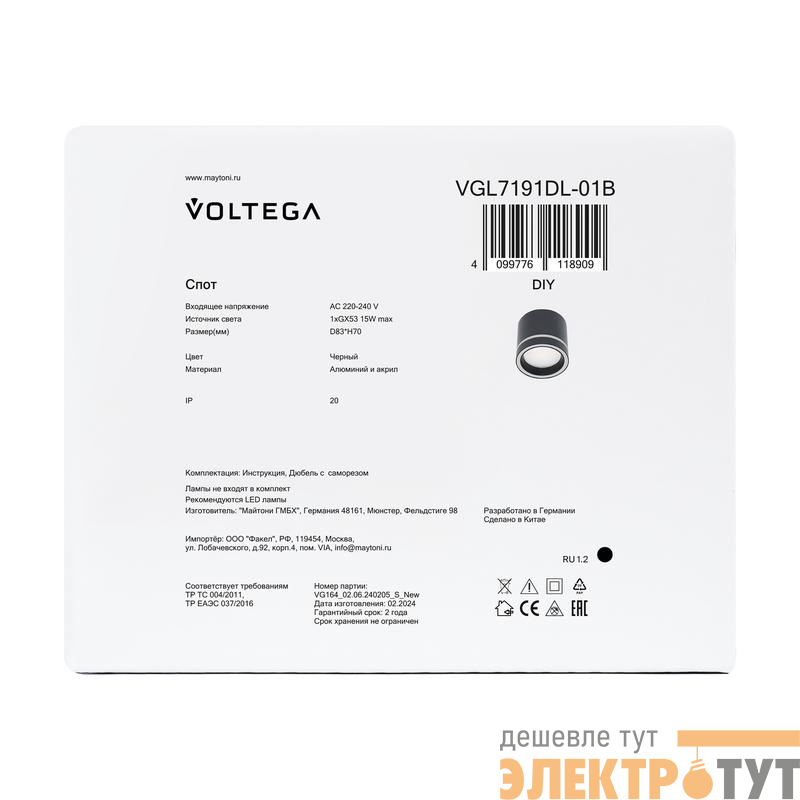 VGL7191DL-01B | Светильник Flip 15Вт GX53х1 IP20 спот Voltega