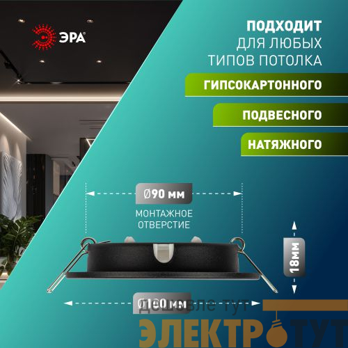 Б0057476 | Светильник точечный KL70 SBK GX53 встраив. черн. матов. ЭРА