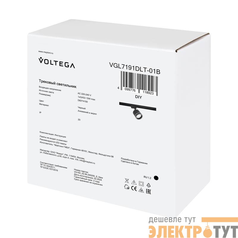 VGL7191DLT-01B | Светильник трековый Flip 15Вт GX53х1 IP20 Voltega