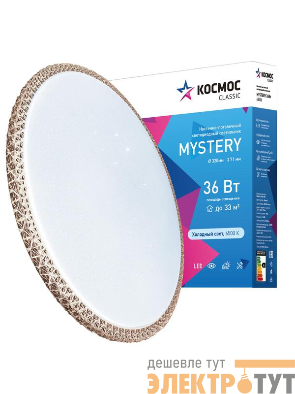 KCMist36W_6500 | Светильник светодиодный Classic MYSTERY 36Вт 230В 6500К 2340Лм 320х71мм настенно-потолочный бронза КОСМОС