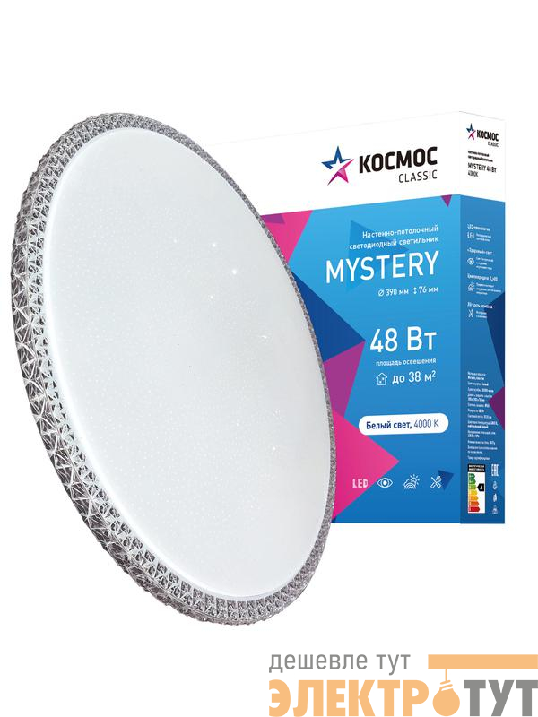 KCMist48W_4000 | Светильник светодиодный Classic MYSTERY 48Вт 230В 4000К 3120Лм 390х76мм настенно-потолочный серебро КОСМОС