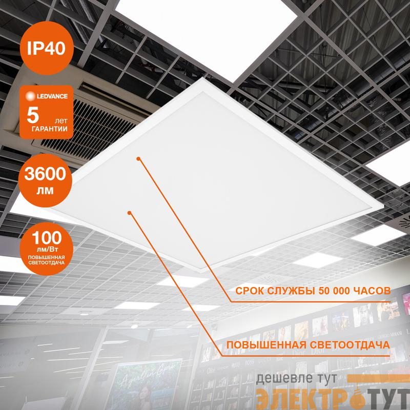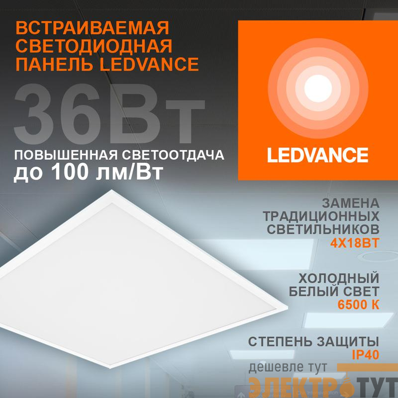 4099854246531 | Светильник светодиодный ECO CLASS PANEL 600 36W 865 36Вт 6500К IP40 3600лм 595х595х32мм ДВО встраив. опал панель (аналог ЛВО 4х18) LEDVANCE
