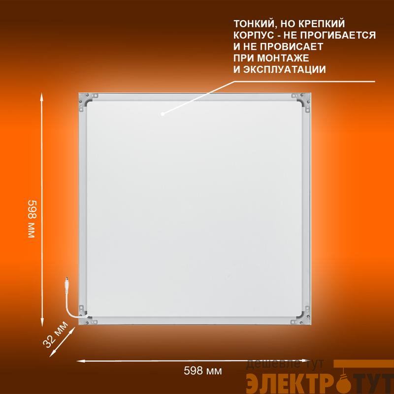 • Простой и быстрый монтаж. Стандартный размер 595x595 мм идеально подходит для потолков типа “Армстронг”, а наличие аксессуаров позволяет монтировать панель на любую поверхность.