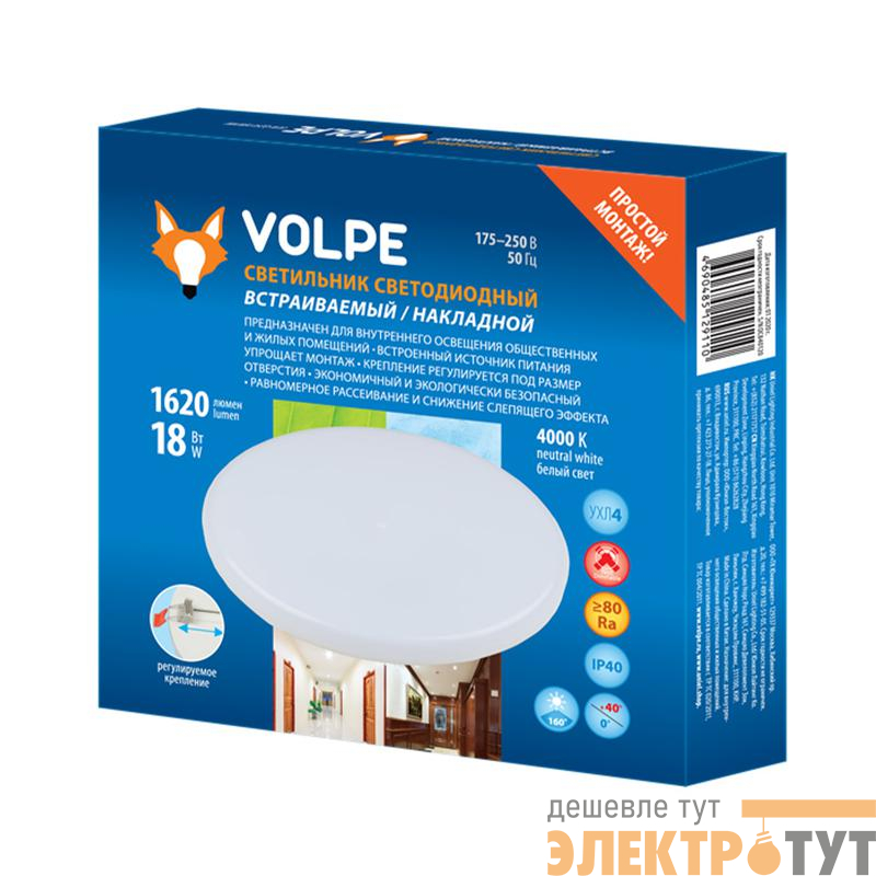 UL-00006757 | Светильник светодиодный ULM-Q250 24W/4000K WHITE 24Вт 4000К встраив./накладной бытовой опал. рассеив. бел. Volpe