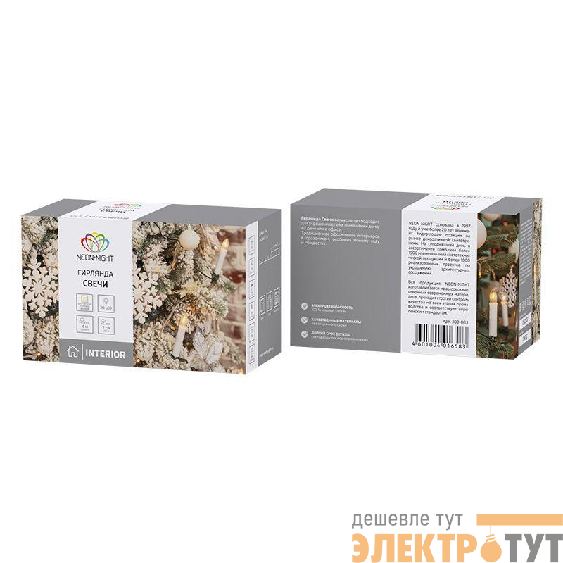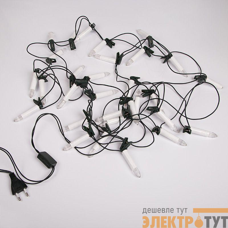 303-083 | Гирлянда светодиодная "Свечи" 4м 20LED тепл. бел. 2Вт IP20 провод ПВХ темн. зел. Neon-Night