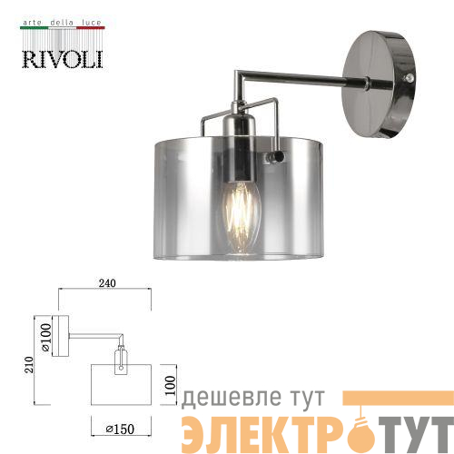 Бра-светильник настенный Rivoli Bonnie (арт. 2078-401) в стиле современная классика. Беспроигрышное решение для оформления дизайнерских интерьеров и преображения любого пространства. Бра настенное выполнено из металла и стекла. Плафон диаметром 150 мм имеет форму традиционного абажура. Дымчатая тонировка плафона смягчает яркость света, что идеально для дополнительного освещения. Арматура бра красивого цвета чёрный жемчуг. Геометричный рожок с декоративными элементами в стиле лофт. Светильник настенный Bonnie от итальянских дизайнеров Rivoli освещает площадь до 3 м2.