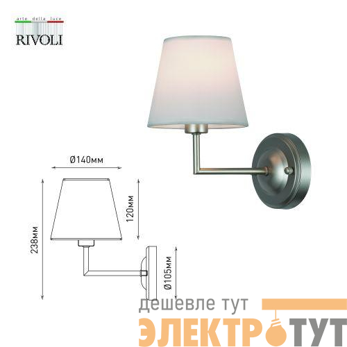 Основание бра с выключателем Freda от итальянского бренда Rivoli – круглое. Классический настенный светильник хорошо смотрится у кровати, у стола, у тумбочки. Чаще всего такие бра классические покупают в спальню, так как они создают спокойную атмосферу для отдыха. Матовые плафоны смягчают блики света. Лампа в бра Freda – Е14 40 Вт. Специальная ткань не пачкается, не накапливает пыль, легко протирается.