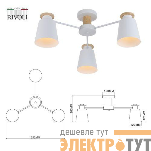 Rivoli Adna (арт. 9112-303) - красивая люстра на потолок с белой арматурой и белыми металлическими плафонами. Декорирована элементами светлого дерева. Дизайн люстры создан в Италии. Люстра в гостиную Adna идеальна для интерьеров в скандинавском стиле, в стиле модерн, лофт-кантри. Плафоны отлично направляют свет вниз - такую люстру можно с успехом разместить на кухне, чтобы стол и рабочие поверхности были хорошо освещены.