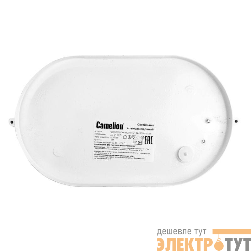 13661 | Светильник 1202S C01 NEW НБП 04-100-001 УХЛ1 "Открытый" 100Вт 130град.C овал бел. Camelion