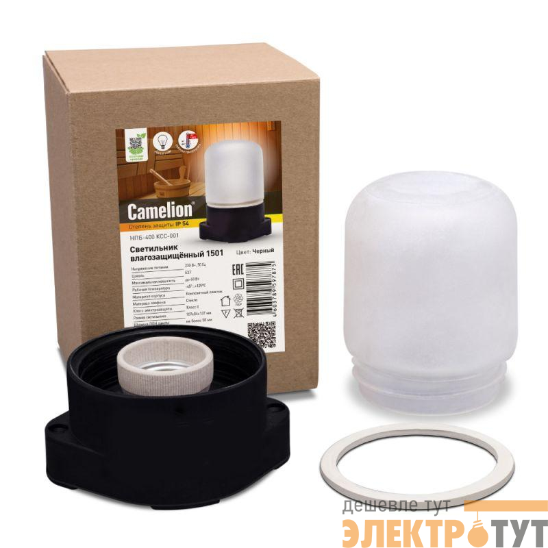 15261 | Светильник 1501 до 125 оС НПБ-400 КСС-001 230В 60Вт черн. Camelion