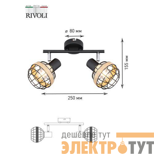 Б0047140 | Светильник Fedora 7033-702 2хE14 40Вт настенно-потолочный спот поворотный Rivoli