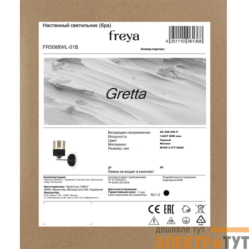 Светильник настенный (бра) Gretta Е27х1 60Вт IP20 Freya FR5088WL-01B — это стильное и компактное решение для создания уютной атмосферы в вашем интерьере. Благодаря своему дизайну бра станет гармоничным дополнением к любому стилю помещения. Настенный светильник Freya FR5088WL-01B отличается своей универсальностью и подойдёт для использования в различных помещениях — от спальни до гостиной. Его лаконичный дизайн и простота установки делают его удобным решением для создания комфортного освещения и добавления эстетики в ваш дом.
