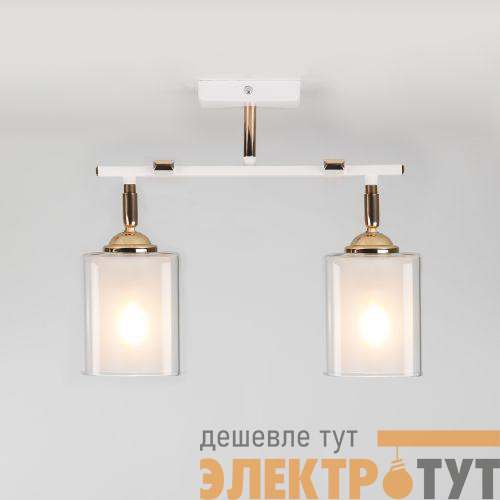 Геометричная арматура этой красивой светлой люстры окрашена в белый цвет, на фоне которого эффектно смотрятся декоративные элементы золотого оттенка. Еще одна дизайнерская находка, отличающая люстры на потолок Rivoli Helga двойная конструкция плафонов: внешний прозрачный и внутренний матовый.