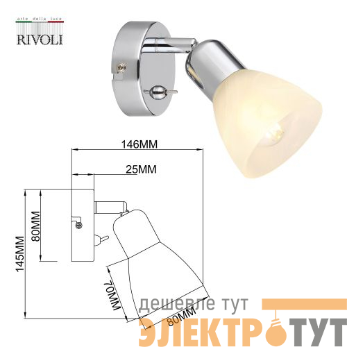 Б0054678 | Светильник Keila 7051-701 1хE14 40Вт настенно-потолочный спот поворотный с выключателем Rivoli