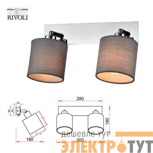 Б0055009 | Светильник Perlita 7058-702 2хE14 40Вт настенно-потолочный спот поворотный с выключателем Rivoli