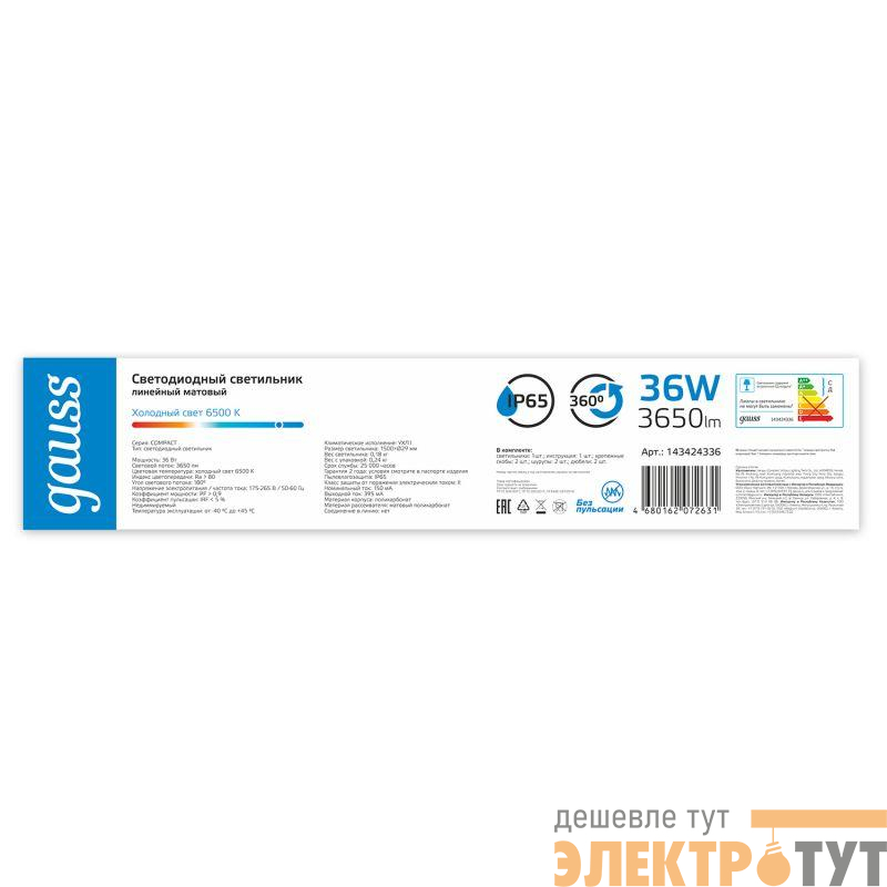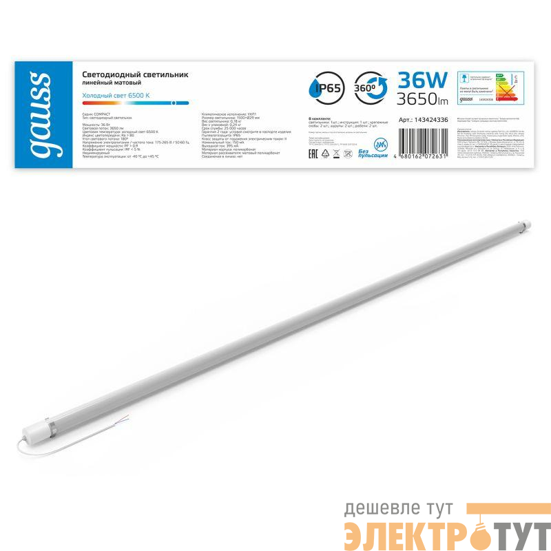 143424336 | Светильник светодиодный 1500х29х29мм 36Вт 6500К 3650лм IP65 COMPACT линейный матов. GAUSS