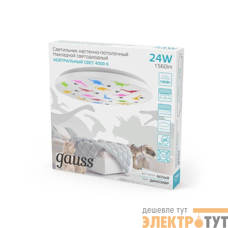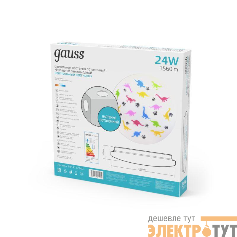 941411224D | Светильник светодиодный 380х63 24Вт 4000К IP20 1560Лм круг (динозавр) настенно-потолочный накладной GAUSS