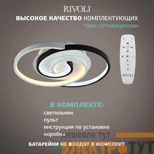 Светильники светодиодные LED потолочные Rivoli Abby с пультом дистанционного управления представлены моделями 57 Вт (арт. 6101-101) и 73 Вт (арт. 6101-103). Потолочные светильники со встроенными светодиодами и пультом ДУ – популярное решение для жилых пространств. Такие LED-светильники потолочные полюбились покупателям за удобство при включении и выключении света, множество режимов работы и за качественный ровный свет без мерцания и бликов. В LED-светильниках на потолок Abby Rivoli применены яркие оригинальные светодиоды, не тускнеющие даже через годы постоянного использования. Оригинальный дизайн плафона и выбор цветовой температуры / яркости – в числе многочисленных преимуществ данной светодиодной потолочной люстры от итальянского бренда.