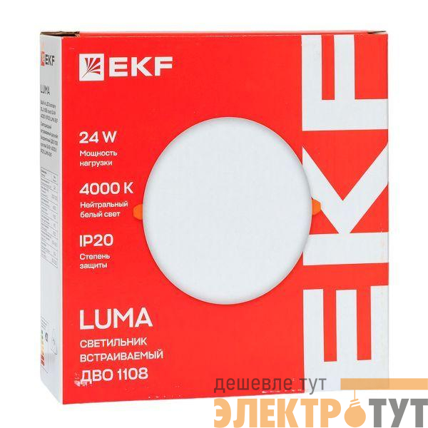 DLL-1108-R-24-4000 | Светильник светодиодный ДВО 1108 24Вт 4000К IP20 круглый встраив. даунлайт безрамочный LUMA EKF