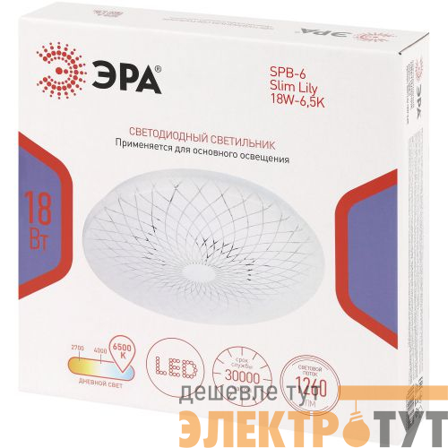 Светодиодный светильник ЭРА SPB-6 Slim Lily 18W-6,5K — современное и функциональное решение для освещения жилых и коммерческих помещений.