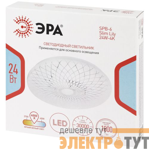 Светодиодный светильник ЭРА SPB-6 Slim Lily 24W-4K — современное и функциональное решение для освещения жилых и коммерческих помещений.