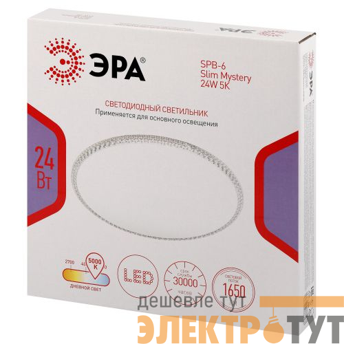 Б0069766 | Светильник светодиодный Классик SPB-6 Slim Mystery WH 24W-5К 24Вт 5000К без ДУ Эра