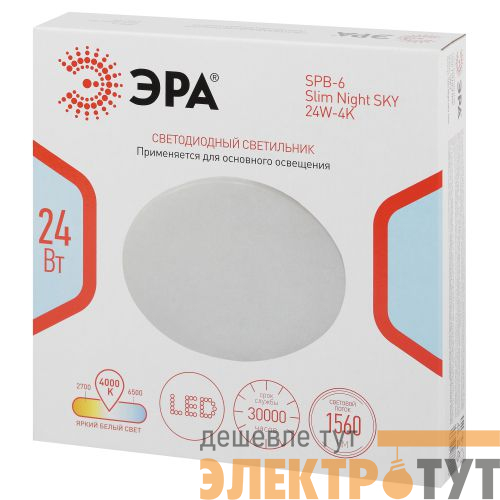 Светодиодный светильник ЭРА SPB-6 Slim Night SKY 24W-4K – современное решение для общего освещения жилых и коммерческих помещений.