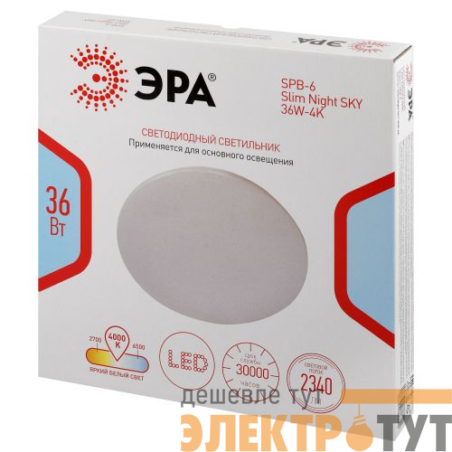Светодиодный светильник ЭРА SPB-6 Slim Night SKY 36W-4K – современное решение для общего освещения жилых и коммерческих помещений.