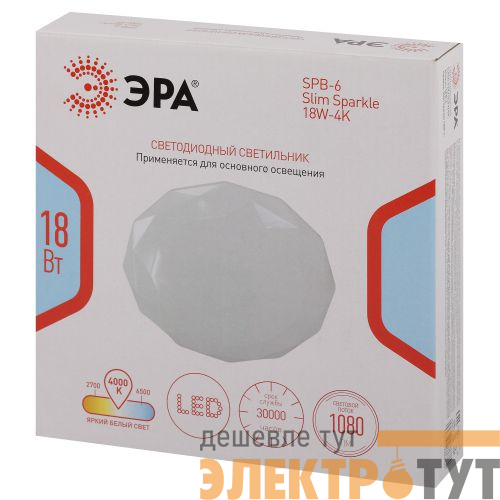Светодиодный светильник ЭРА SPB-6 Slim Sparkle 18W-4K– современное решение для общего освещения жилых и коммерческих помещений.