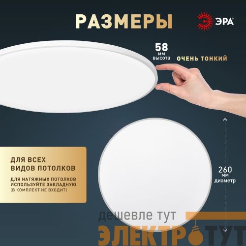 Компактные размеры 260?58 мм позволяют использовать его в сухих пространствах (степень защиты IP20) с низкими потолками, а универсальный дизайн сочетается со многими интерьерными стилями.