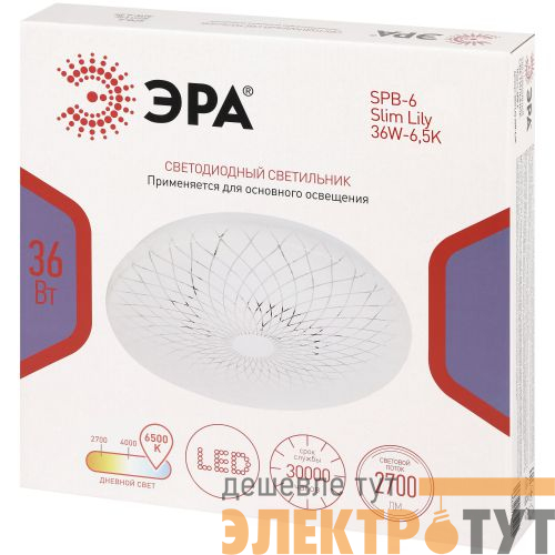 Светодиодный светильник ЭРА SPB-6 Slim Lily 36W-6,5K — современное и функциональное решение для освещения жилых и коммерческих помещений.