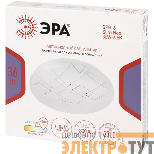 Светодиодный светильник ЭРА SPB-6 Slim Neo 36W-6,5K — современное и функциональное решение для освещения жилых и коммерческих помещений.